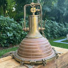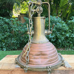 This incredible solid brass and copper light has so much character. The deep rich glow of the copper will add drama and history in any setting. Beautiful in a dining room, over a kitchen island, the pool table or patio. The cargo light was once used on ships to light the decks. I guarantee that this will give your home that distinct style you want. It is Very Special!