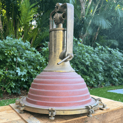 This incredible solid brass and copper light has so much character. The deep rich glow of the copper will add drama and history in any setting. Beautiful in a dining room, over a kitchen island, the pool table or patio. The cargo light was once used on ships to light the decks. I guarantee that this will give your home that distinct style you want. It is Very Special!