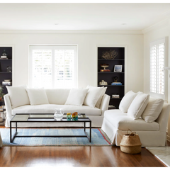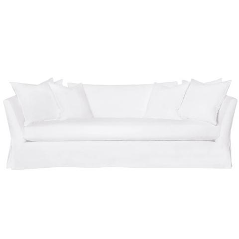 The St. Bart's Slipcovered Sofa from our Island Collection is made for life by the water. Available in three sizes, the St. Barts is designed with a relaxed coastal spirit, it features a clean silhouette, slightly flared arms, and soft, loose back pillows that bring effortless comfort. The wide, welcoming arms and spacious bench seat are perfect for stretching out after a day on the water, while the kick-pleat skirt adds just the right hint of polish. An Our Boat House favorite—for good reason.