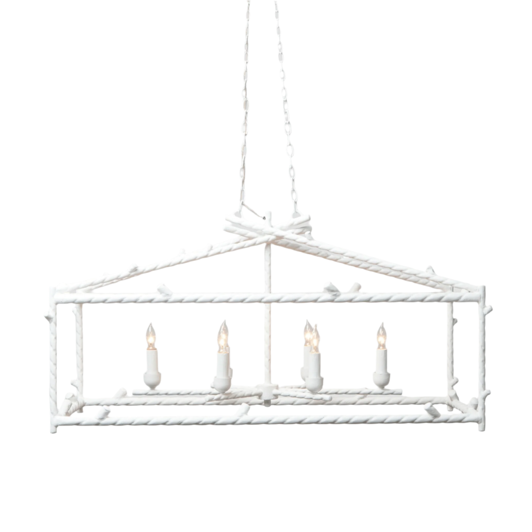 Fun and quirky, the Tessa updates the birdcage chandelier with twig-inspired bars and sharp white finish. A playful addition to a breakfast room, kitchen, or powder room.