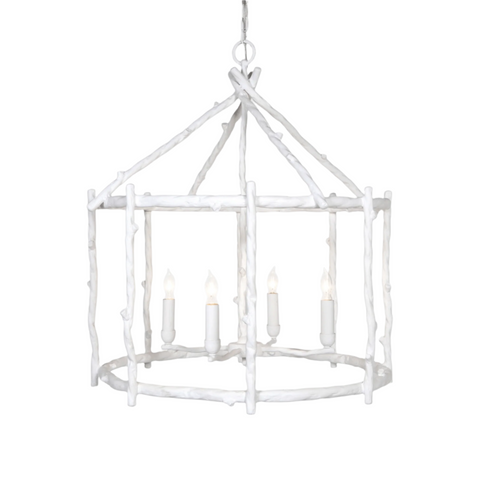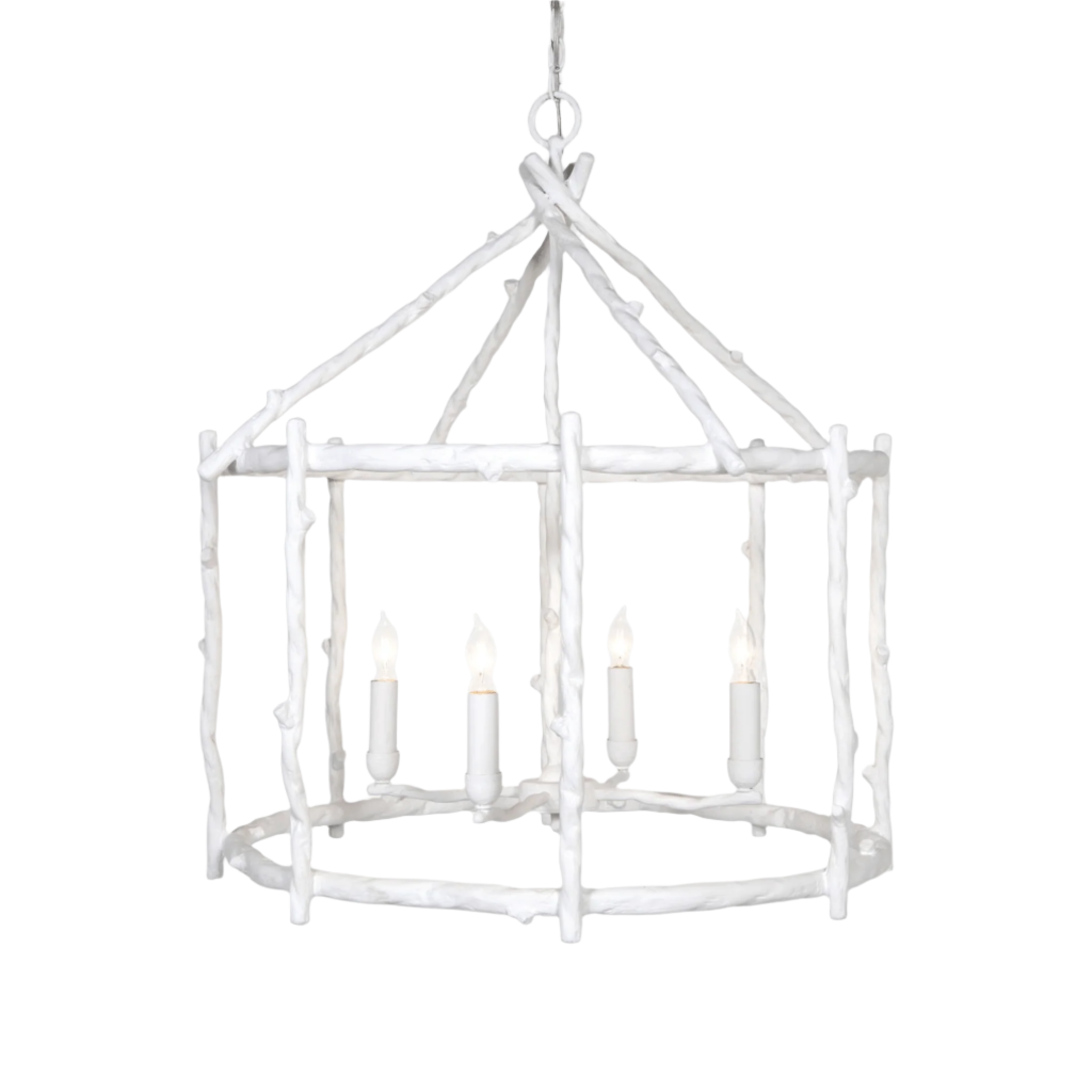 Fun and quirky, the Tessa updates the birdcage chandelier with twig-inspired bars and sharp white finish. A playful addition to a breakfast room, kitchen, or powder room.