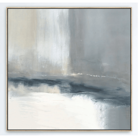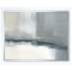 The strand has soft blue-grays, taupes, and deep navy. This is art form is mixed media. Absolutely stunning piece in person.