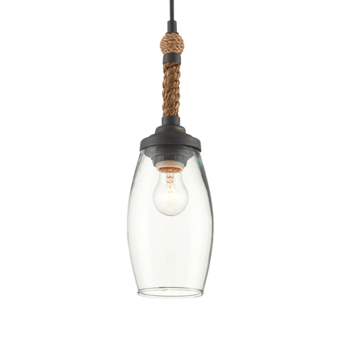 The perfect combination of natural and industrial materials, the Tidewater Pendant has a recycled glass shade and a wrought iron frame in a French black finish.The Abacá rope that is wrapped around the stem of the pendant, adding it the nautical texture, then is finished with an adjustable cord.