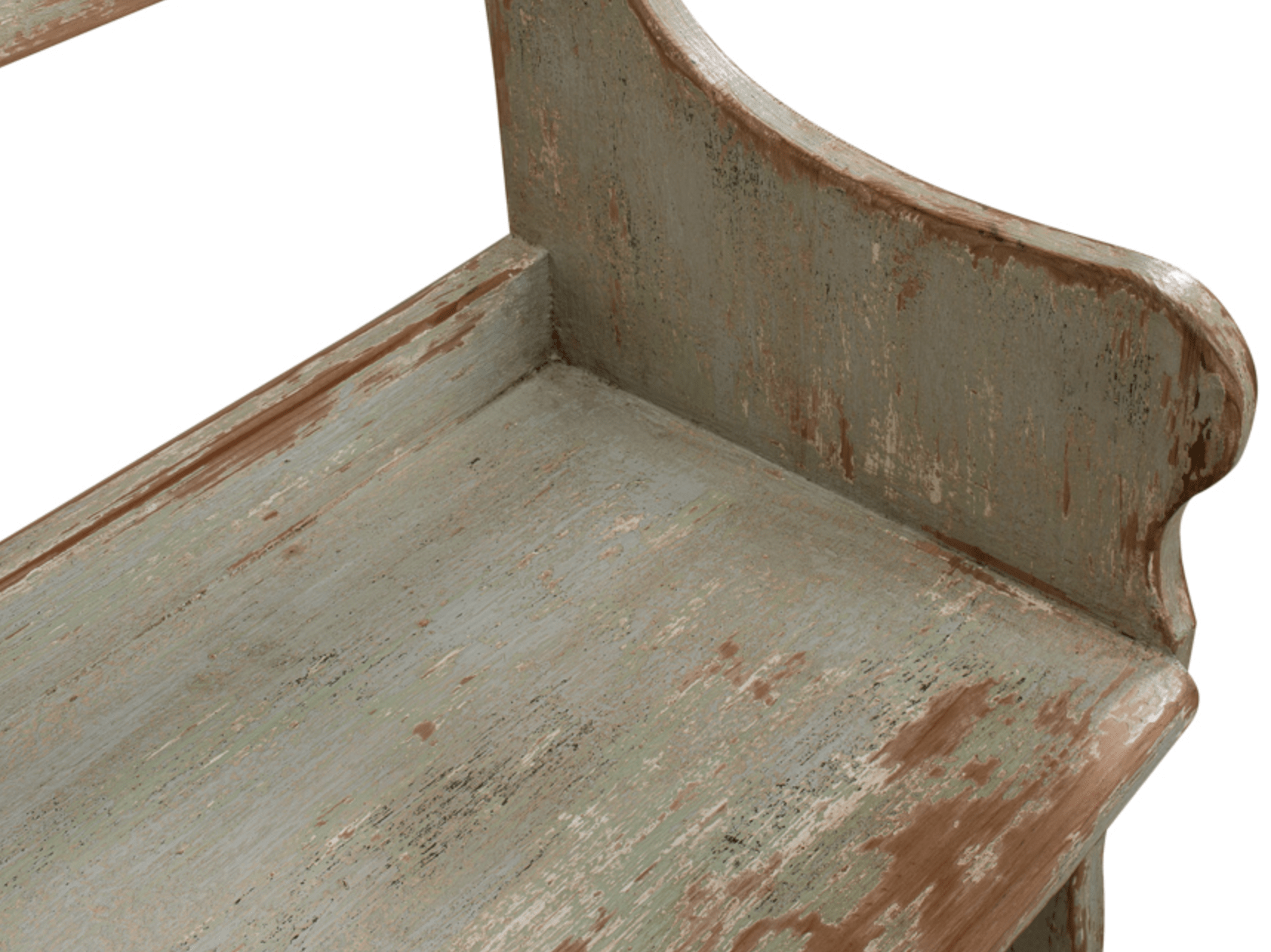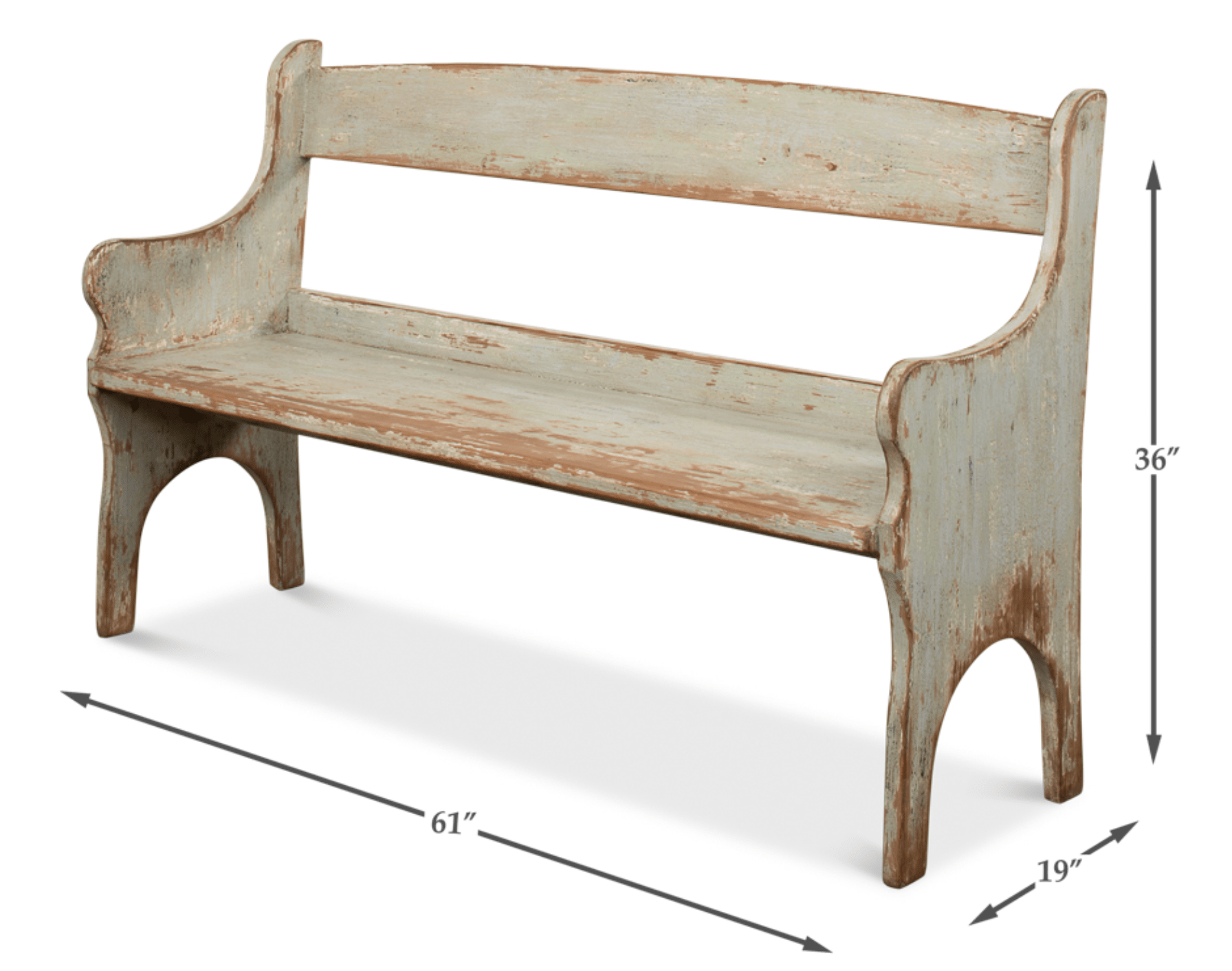 Transport yourself to a bygone era and have a seat on the Vintage School House Entry Bench. It exudes historic charm with a hand-rubbed vintage sage finish, with ample seating make it a timeless addition, perfect for the entry or any room in the house.