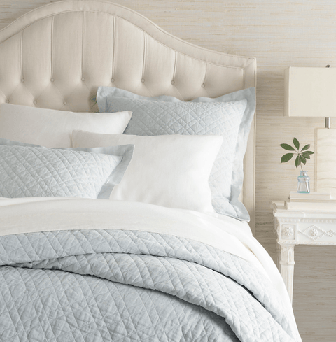 Capture linen's timeless appeal with this casually elegant modern take on the classic quilt. Lush linen on the front, a thin layer of batting in between and silky cotton percale of the back add up to the perfect extra layer for transitional spring nights. Traditional diamond quilting stitch keeps it all together. Laundered linen quilt is washed and tumbled to soft perfection for a relaxed, lived in look.