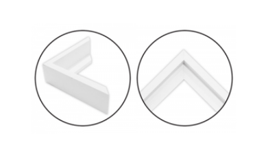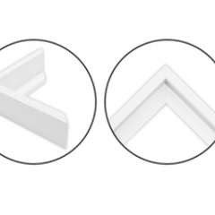 Frame is a Matte white Floater Frame: 0.625" x 1.75"